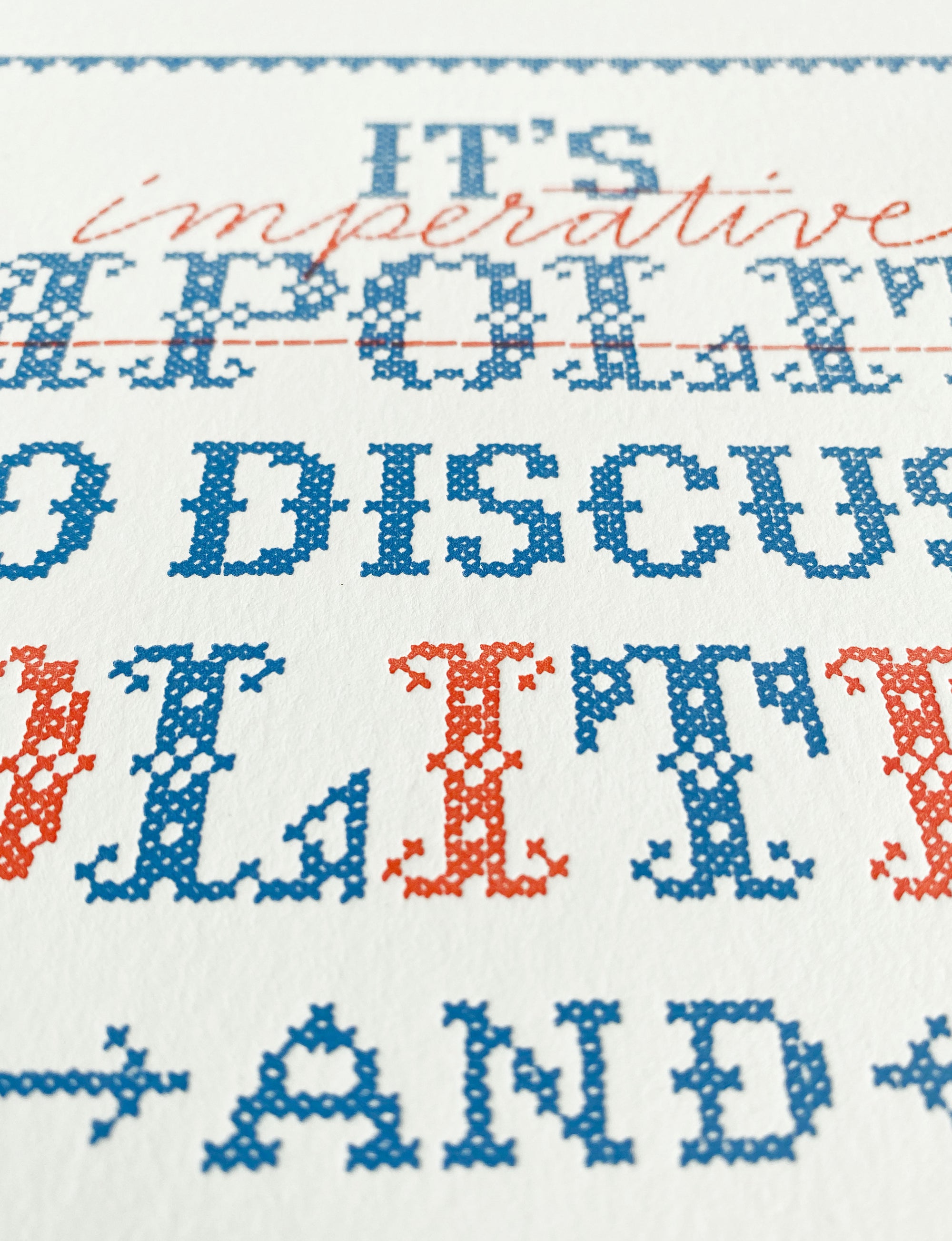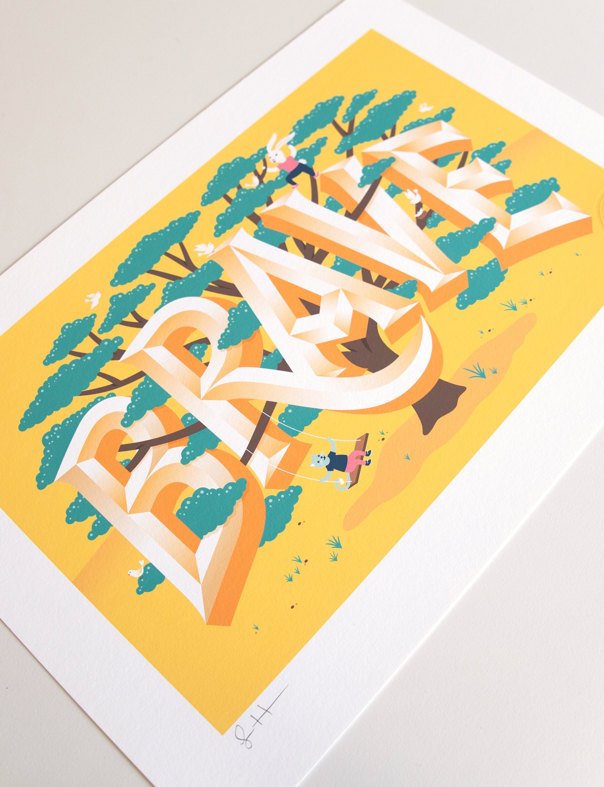 Nearly all of the prints and art you see in the shop are designed and produced by hand in my Downtown Oakland studio. If I can’t make something myself on my letterpress, riso, or lasercutter, I work with best of the best fabricator friends like Studio on Fire, Big Secret, and Prince Ink.